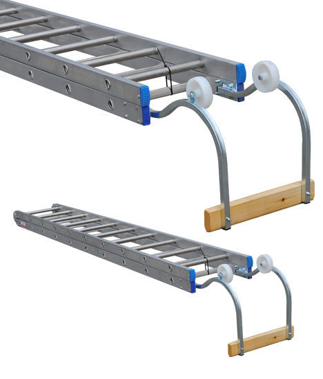The aluminium folding roof ladder is fitted an aluminium box section complete with ridge hook and crawler wheels. As the ladder is aluminium it is light in weight. The wheels on the ladder make is easily manoeuvrable and avoids the damage of slates on the roof. The design of the hook allows it to securely grip the apex of the roofs on which it is being used.
