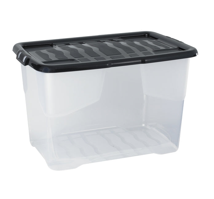 • This 60L curved storage box clear with single black lid is ideal for organising excess items in your home