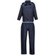 An affordable coverall which protects against adverse weather conditions. Made of 150g PVC coated polyester, it has full length sleeves and trousers with a zip front fastening on the jacket, and a drawstring hood. An elasticated trouser waist gives comfort and movement to the wearer. Two flap-covered pockets in the jacket protect and store your personal or work belongings.