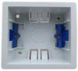 The Powermaster Dry Lining Box - 32mm 1 Gang is a white bakelite box. It is for use on single switches such as a dual immersion switch, as it is for use on hollow walls or cavities where extra grip is needed for the fitting to remain in place.