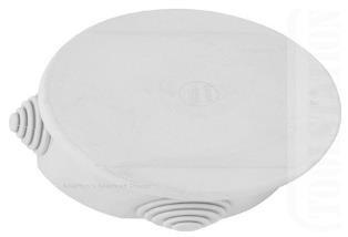 The Phoenix Round Junction Box IP44 - 65mm (empty) is a waterproof container for electrical connections, usually intended to conceal them from sight and deter tampering. Made of durable white plastic, this round junction box is suitable for domestic and commercial use
