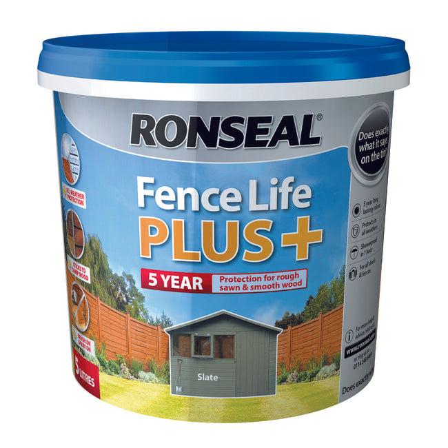 Ronseal Fencelife Plus+ delivers the ultimate protection to exterior sheds and fences. It's rainproof, frostproof and has advanced protection against UV rays. Its versatile formula can be used on both rough sawn and smooth planed wood. It will even stick to damp wood. Its colour and protection will last up to 5 years