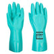 Chemical resistant gauntlet with textured pattern for enhanced grip. Flock lined for added comfort. For use in the chemical, oil and food industries.