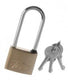 The 40mm long-shackle solid brass-body padlock has a 5-pin cylinder. It gives a 54mm shackle clearance when locked making it more versatile for use on gates as well as other applications where extra shackle clearance is required. The 6mm hardened double-locking shackle makes it more resistant to cutting and prying and it has a rubber ring aound the shackle to help prevent water ingress if used outside. Each lock comes with 3 brass nickel-plated keys as standard.