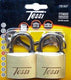 A twin pack of 40mm brass padlocks keyed alike. The 40mm solid brass body padlock has a 4-pin cylinder and a 6mm hardened steel double locking shackle making it a great lock for around the house and office. It has a rubber ring around the shackle which helps prevent water ingress when used outdoors. Each pack comes with 4 keys.