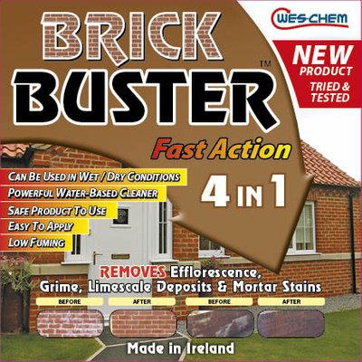 Wes-Chems Brick Buster fast action 4 in 1 Removes efflorescence, grime, limescale deposits and mortar stains. Brick Buster is a low fuming Water based product which is safe and easy to use in wet or dry conditions.