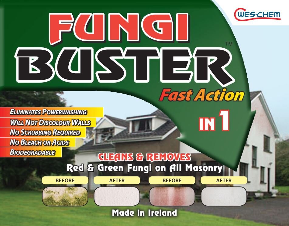Wes-Chems Fungi Buster fast 2 in 1 action. Formulated to clean and remove red and green fungi on all masonry.
